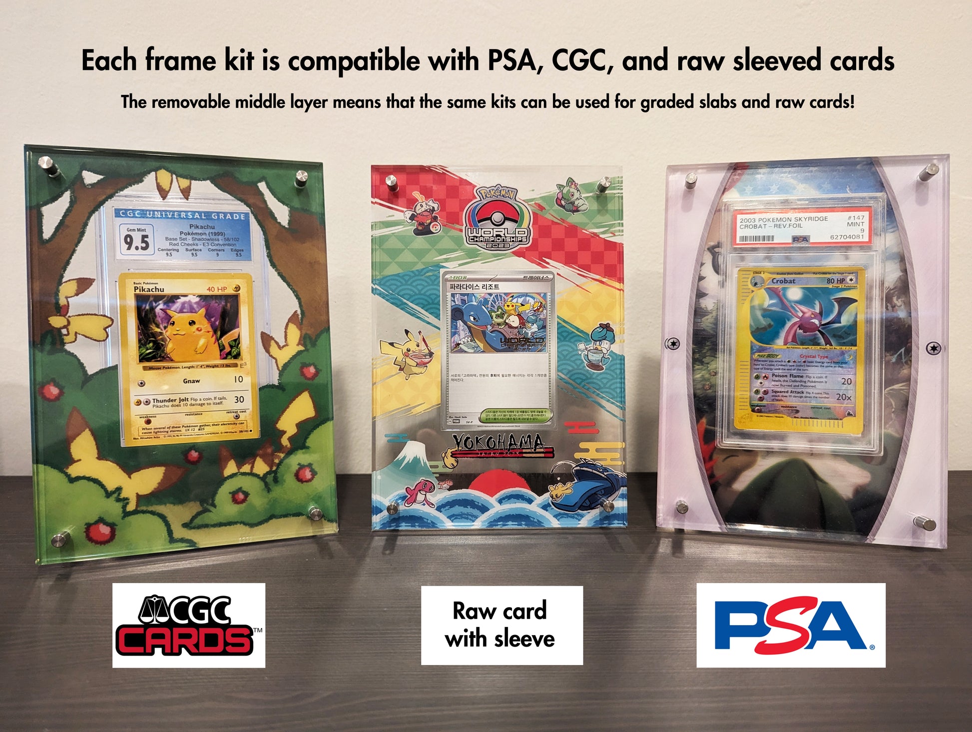 - One acrylic shield, with the ability to display a PSA, or raw Pokémon Card